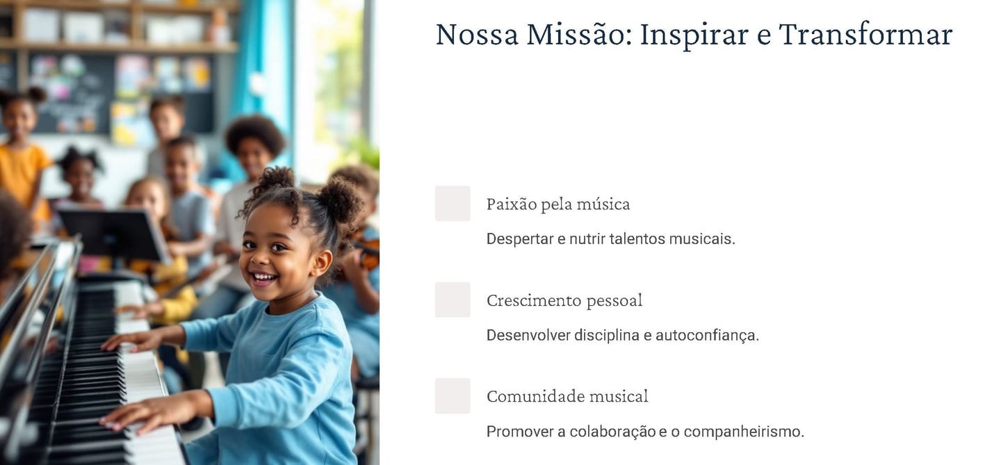 Com prática e paixão, você evolui e se expressa como nunca. Seja para tocar, cantar ou compor, a música transforma momentos comuns em memórias inesquecíveis, e nós estamos aqui para te guiar nesse caminho.